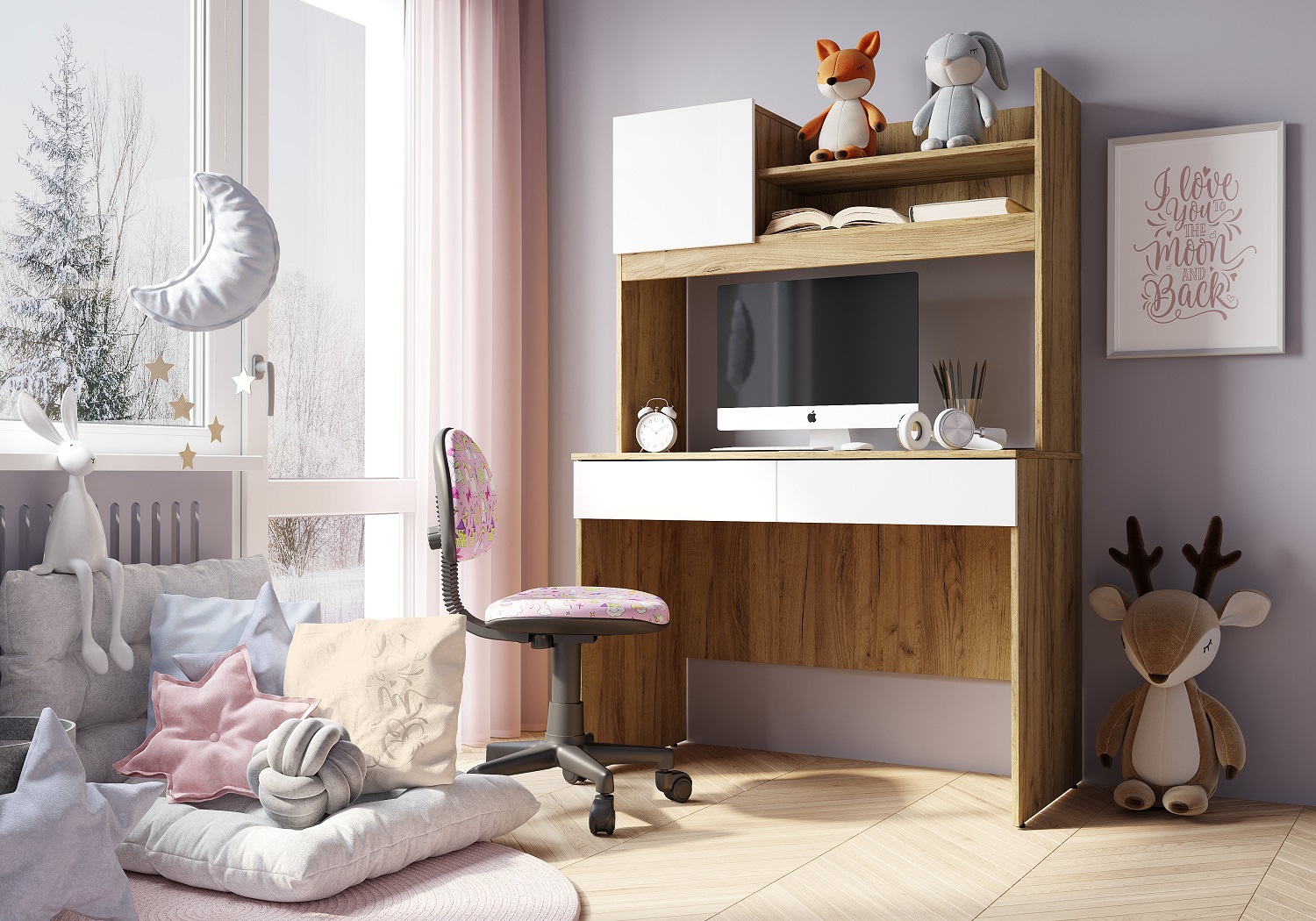 Селфи - комплект мебели для организации рабочего уголка Вашего ребенка. Состоит из вместительного письменного стола с надстройкой, тумбы с выкатными ящиками и шкафа-пенала. Мебель выполнена из ЛДСП в практичном декоре крафт/белый, поэтому впишется в любой по стилю интерьер. Особенности трендовый декор крафт/белый глянец регулируемые подпятники максимальная нагрузка на ящик и полку - 5 кг сочетание открытых и закрытых зон хранения шариковые направляющие полного, плавного и бесшумного выдвижения