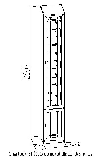 Хотите купить узкий книжный шкаф в классическом исполнении? Модель Sherlock 31 - то, что Вы искали! Это высокий шкаф для книг, который можно установить в помещении с высотой потолка не менее 240 см. Глубина модуля составляет всего 34 см, а значит Вы сможете организовать хранение книг и других вещей даже в малогабаритном помещении. За комбинированным стеклом фасадом скрывается комплект полок, которые регулируются по высоте. Это позволит Вам расположить литературу различного формата в одном месте и соблюдать порядок. Шкаф будет гармонично смотреться в комплекте с другими книжными шкафами и витринами из коллекции Sherlock. Особенности ЛДСП 16 мм, профиль МДФ, кромка ПВХ тонированное стекло 4 мм декор "орех" регулируемые по высоте полки обязательное крепление к стене за подвесы дверца открывается направо